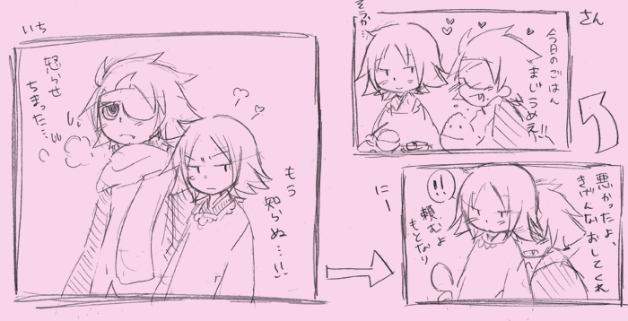 ひそりとでしたが、夫婦の日っぽい絵を描けて満足でしたwwもっとこう、料理中にむらとくるアニキとか脳内上映されてたんですが、具現化されたのはやはりキスまでな雰囲気の瀬戸内でございましたー^^