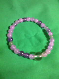 紫の石は藤雲石(癒しの石でストレス解消、自信と勇気がわいてくるよ)で、ちっさい緑の石が翡翠(身近な人への愛が深まる、金運とか家庭運とかにいいよ)です。