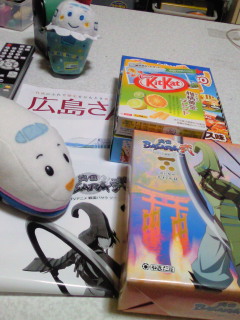 ひろしま土産、無事届きました、写め^^しばらくもだえてましたw嬉しくて、私にとっての日輪くん(サ/ン/リ/オ/し/ん/か/ん/せ/ん)と一緒に撮り・・!えむさん本当にありがとうございましたー・・っ///